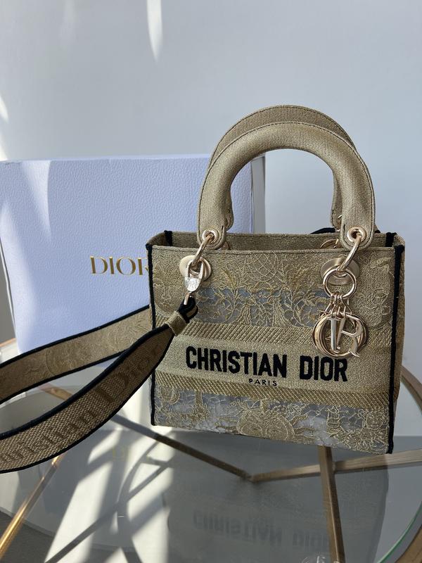 Medium Lady D-Lite Gold (Арт: 01022) Премиум качество⭐️ 📐 Размер: 24 х 20 х 9 см 🧵 Материал: Текстиль Текстильная сумка с фирменной прошивкой. Внутри одно большое отделение, закрывается «капюшоном». Также внутри есть небольшой карман на застежке. Подкладка у сумки из качественного брендированного текстиля. Фурнитура металлическая, с золотым покрытием, пробрендованная. Брелоки с буквами в мешочку. 🛍Комплектуется в пыльнике, в брендированной коробке на магнитах с лентами, также в комплекте есть буклеты.