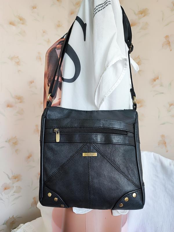 Небольшая кожаная сумка с длинной ручкой, длина ручки регулируется. Спереди два кармана , один на замке, другой на липучке. Сзади карман на замке. Одно большое внутреннее отделение и маленькое для мелочи на молнии. Состояние новой вещи. Следы ношения отсутствуют. Дефектов нет.