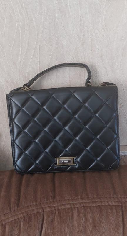 Сумочка в идеальном состоянии.Кожа.Вся фурнитура брендированная.Кутики без потертостей.Един нюанс, если будет желание можно заменить подкладку.В цене учтены.В середине один карманчик на молнии, а два других без застежки для телефона и различного щепотка.Фурнитура вся под бронзу.Сумка хорошо держит форму-каркасная.Сумка имеет брючин высота 20см Ширина 26см Ширина дна 7см длж.цепочка118см