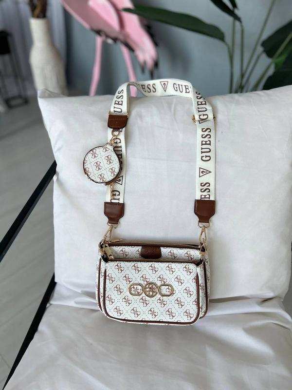 Сумка Guess 3в1 Multi 📐Размер:23*16*5 см 🧵Материал:эко кожа Сумочка выполнена из экокожи с фирменной канвой. Сумка из двух частей, в каждой из которых одно большое отделение.Декоративная цепочка на карабинах и легковесного металла. Внутренняя подкладка из плотного текстиля.Ремень из текстиля регулируется от 82 сантиметров до 117 см. Также на поясе есть небольшой круглый кошелек на молнии для разной мелочи. 💵Стоимость:1799