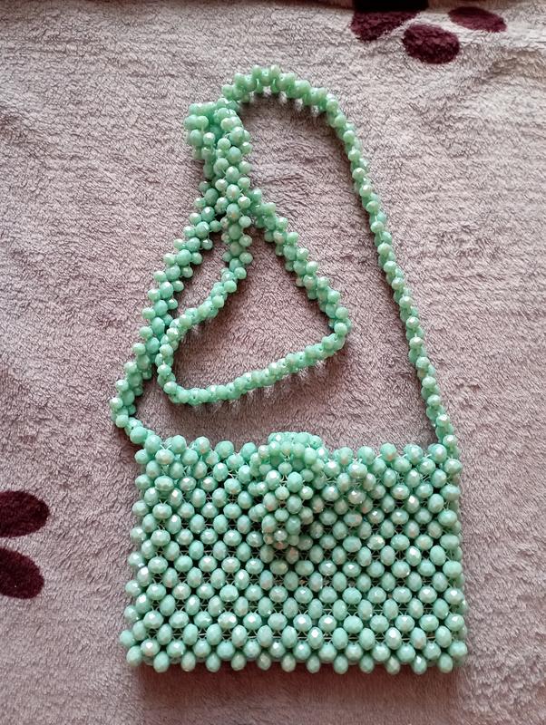 Сумочка кришталева з бусин бірюзового кольору з довгою ручкою