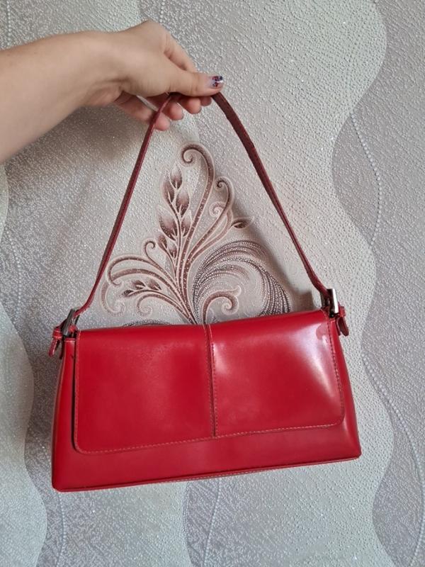 25 см длина, 12 см высота, 3.5 см ширина, натуральная кожа, краска на швах ручки трох изношена