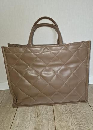 Сумка из экокожи, в идеальном состоянии, легко помещается формат А4, размер В×Ш×Г - 33×41×17 см (на фото замеры) Цвет карамельный. Есть длинная ручка, одно отделение, один карман на молнии, второй открытый.