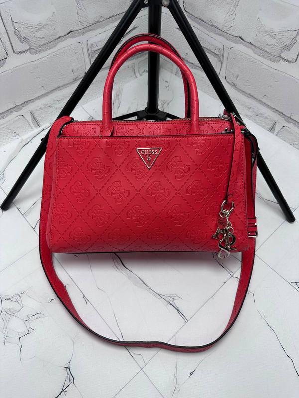 Яркая монограммная сумка Guess Maddy 4G Есть множество отделений и карманчиков, пояс для носки на плече и красивый аксессуар с годом основания бренда. Состояние новое