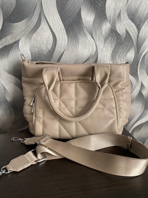 Женская сумка, в хорошем состоянии. Мягкая, имеет еще ремешок, чтобы носить через плечо. Имеет 4 отделения и несколько карманов. Замочки все работают. Лист а4 помещается.