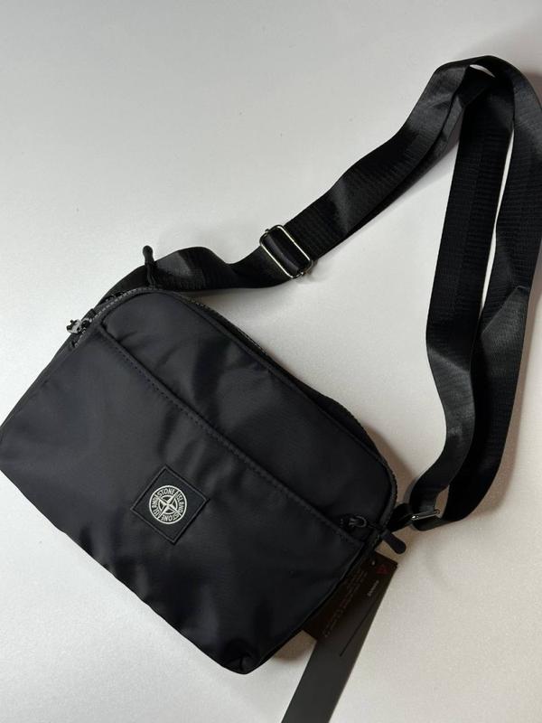 АКТУАЛЬНАЯ ЦЕНА, И НАЯВНОСТЬ ТОВАРА УЗГОДЖУЙТЕ ИЗ НАМ СОВРЕМЕННО!!! Сумка Stone Island 38923 Модель: Сумка Stone Island черная прямоугольная Размер: Ш25*В19*Т8cm Описание: Универсальная сумка Stone Island среднего размера , изготовлена из качественной нейлоновой ткани черного цвета и украшенная фирменным лого белого цвета на лицевой стороне. Сумка имеет большой съемный регулируемый плечевой ремень, два основных отделение, одно мелкое наружное и одно небольшое отделение сзади. Все отделения на змейке. Материал: нейлон