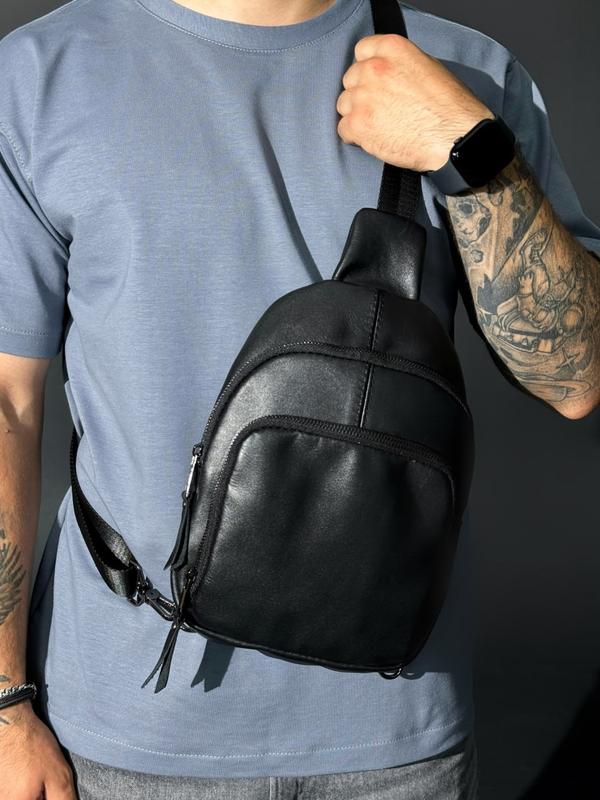 Сумка слінг із натуральної шкіри, шкіряна сумка через плече skill (чорна)