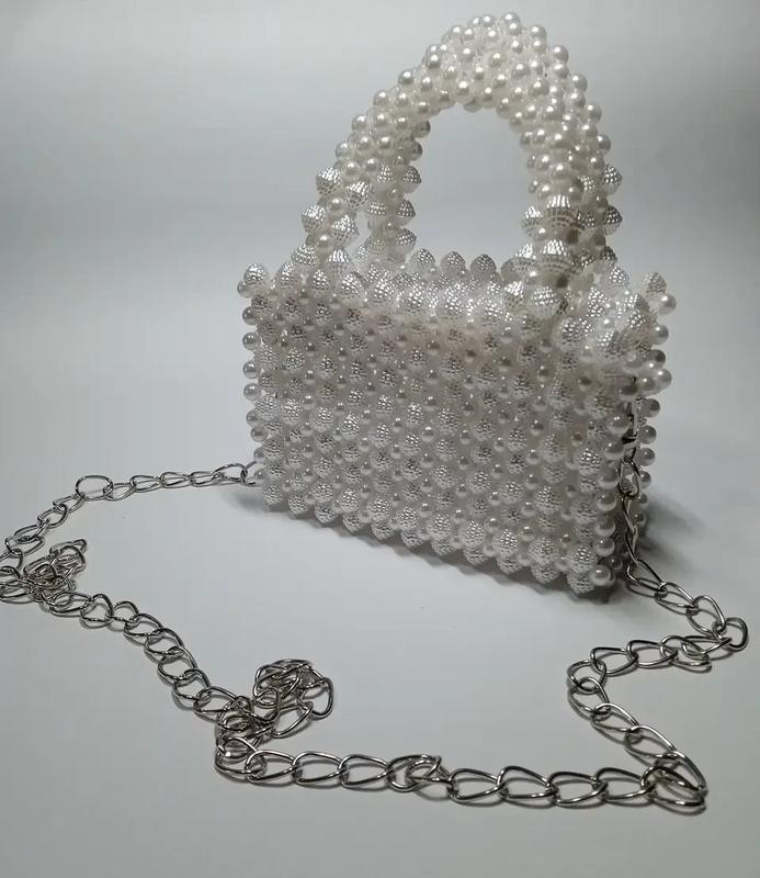 Сумка из бусин с цепочкой ручной работы handmade белый 512666vi