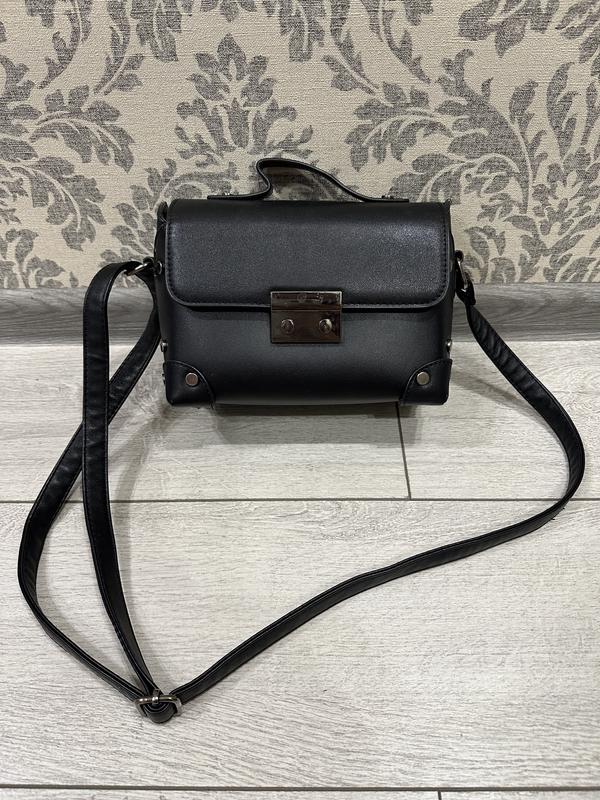Сумка. Кожзам. Через плечо. Состояние 7/10. С дефектом, нет одной заклёпки с задней стороны (есть на фото) так же немного поцарапана застёжка спереди, так же прикрепила её фото.