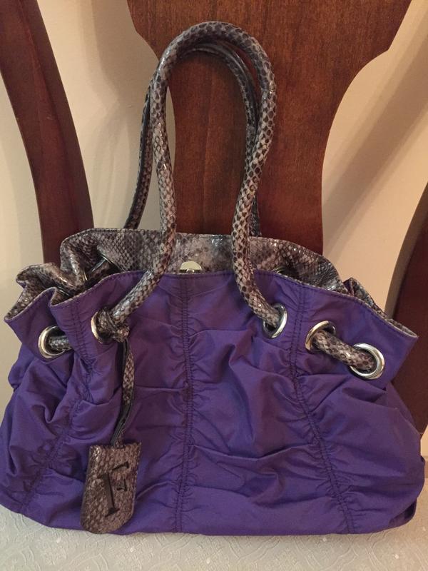 Сумка куплена в фирменном магазине в Милане. Ткань как плотная плащёвка. Отделка- кожа питона. Состояние отличное!