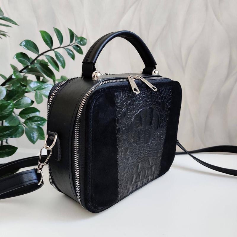 Материал - натуральная замша+ эко кожа. 💳 Цена 899 грн 📐Размеры: Ширина по низу -22 см Высота -18 см Дно- 8,5 см Длинный регулируемый ремешок Сумочка имеет два отделения, между ними карман-перегородка на молнии. Внутри один карман открытый и еще один карман на молнии. #сумки