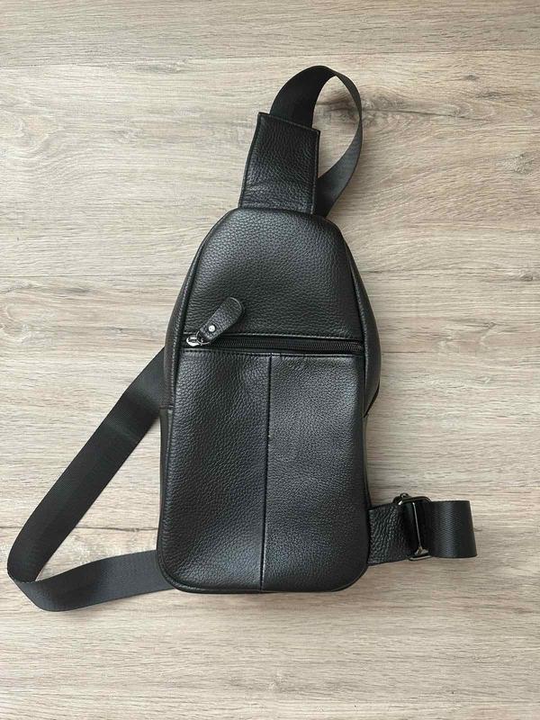 Бананка чоловіча з якісної еко-шкіри. Зовні спереду сумки три кишені. Зовні на спинці сумки одна кишеня на блискавці. Стандартно поставляється на обхват по талії (через плече) від 110 см до 165 см: ремінь, що регулюється.