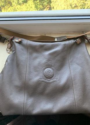Сумка итальянская кожаная бежево серого цвета достаточно вместительная имеет небольшой дефект