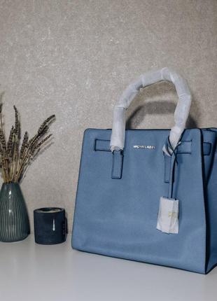 Опигінал. Привезена из США. Натуральная кожа. Цвет голубой,цвет фурнитуры - серебро. Съемный ремешок. Внутри подкладка с монограммой Michael Kors. Карманы: один на молнии, 4 открытых Размеры: 33 х 28 х 12,7 см.