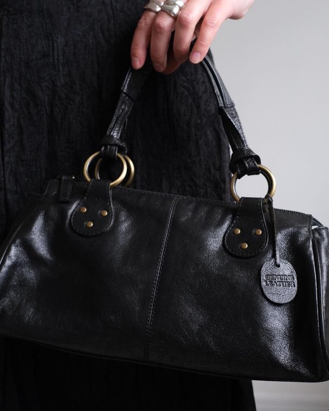 Актуальна шкіряна чорна сумочка багет у вінтажному стилі