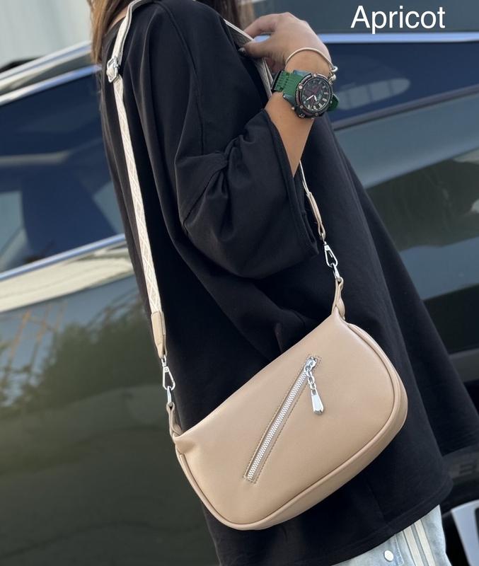 ЖІНОЧА СУМКА Достатньо міська сумочка Довгий ремінь регулюється по довжині. Застібається на блискавку . Має одне відділення та додаткові кишені в середині. З зовнішньої сторони кишеня-обманка. Матеріал: еко шкіра . Виміри: Висота виробу - 17 см. Ширина - 26 см. Товщина - 8см.