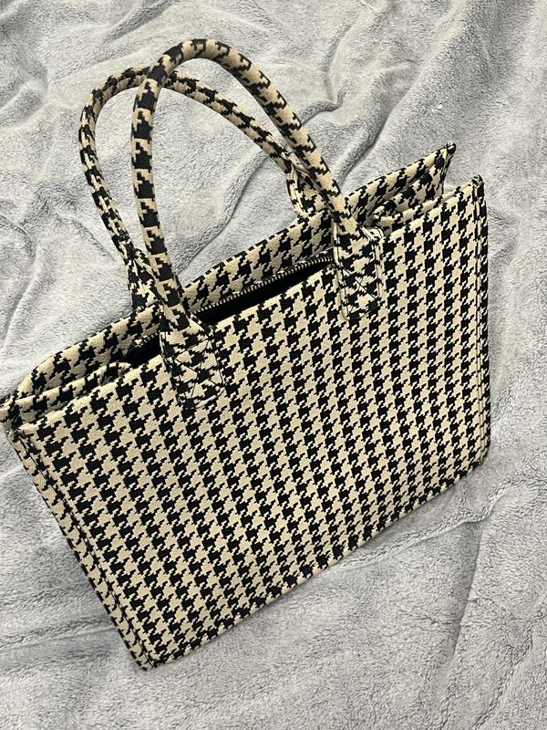 Женская сумка в принт гусиная лапка. Вмещает ноутбук. Средний размер, материал текстиль. Стан 4/5.