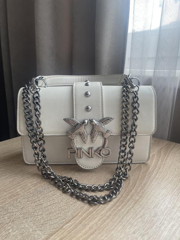 Сумочка Pinko, у дуже хорошому стані, всередині є два відділення, відділення під замочком а також кишенька. Ланцюжки знімаються, можна зачепити по іншому Довжина 21см, висота 13см, ширина 6 см