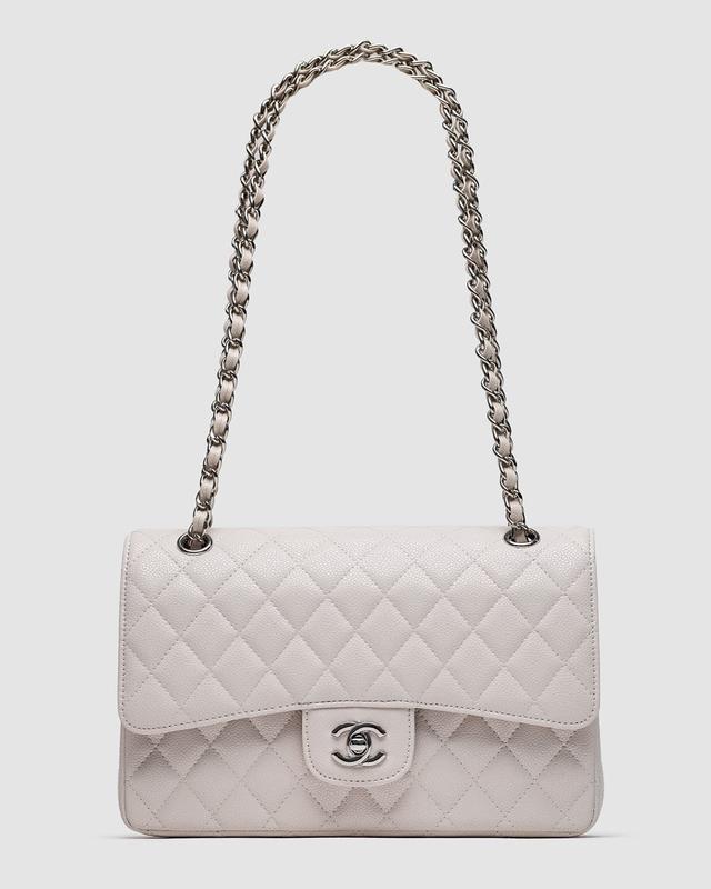 Сумка в стиле chanel classic 2.55 medium double flap in white/silver