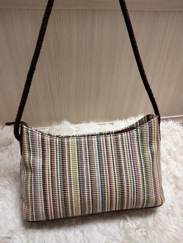 Сумка багет Tula Англия. Натуральная кожа и плотная ткань. Сумка держит форму. 29/16/8см, ручка 76см