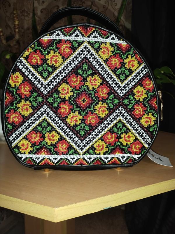 Сумочка черная с вышитым орнаментом выполнена из экокожи имеет внутри один большой отдел и карман для телефона, снаружи также имеет карман на молнии