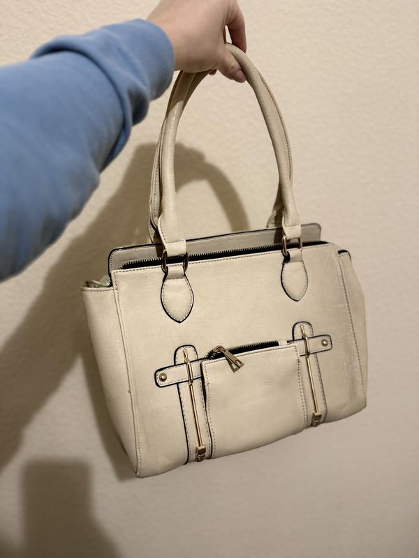 Зручна містка сумка бежевого кольору. Великий відділ, малий, перегородка на блискавці, потайні кишенькі зовні та всередині, 2 відкриті кишенькі всередині, одна маленька на блискавці спереду сумки. Розміри 29x25x14. Є довгий ремінець в комплекті.