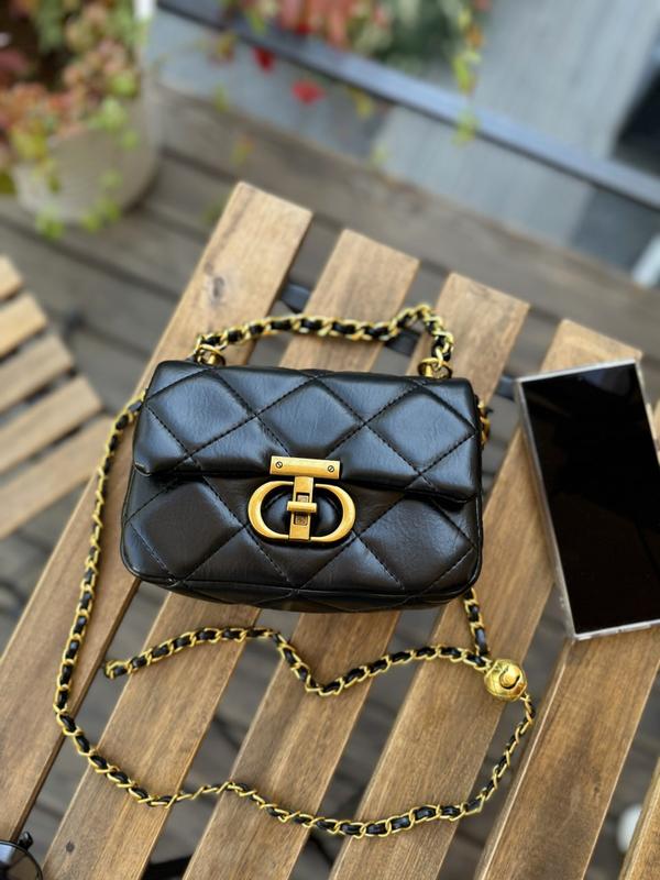 Материал: эко-кожа Размер 19*13*6,5см Одно главное отделение на блузке, один дополнительных карманы в середине на белье. Закрывается на замочек. В середине есть подкладка из щадящего текстиля Ремешок состоит из массивной цепочки с вплетенной кожей, регулируется с помощью цикового замочка, который напоминает нам уже популярную нам модельку. Максимальная длина ремешка 120см. Ручка состоит из цепочки с вплетенной кожей, не регулируется.