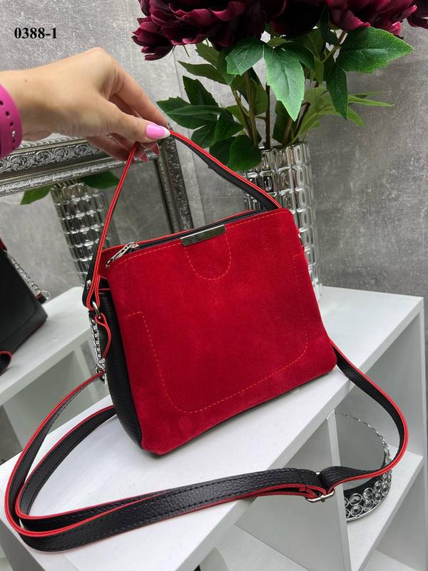 Сумочка женская красно/черная замша натуральная/кожезаменитель