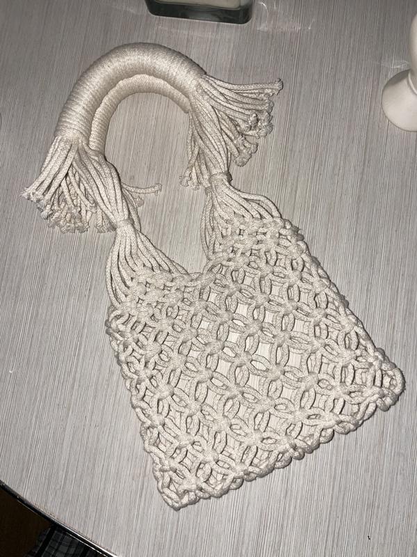 міні макраме сумочка у молочному кольорі ( без чохла в середині ) вмістка частина 15 см , загальна висота з ручками 30-32 см
