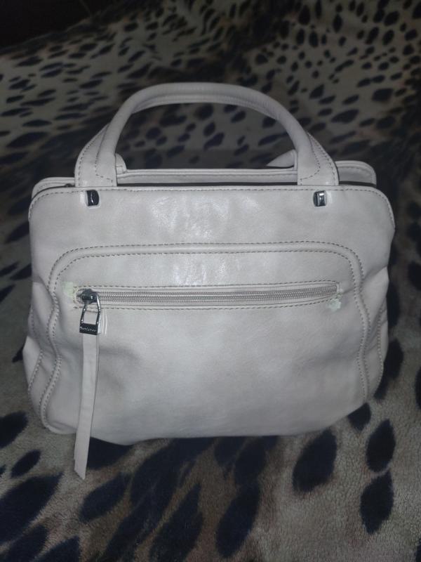 Сумочка бежево - рожевого кольору. Размер 36 х 25. Дно сумочки 32 х 13. Есть маленький нюанс - круг замочка чуточку пошевелился кожзам ( на фото)
