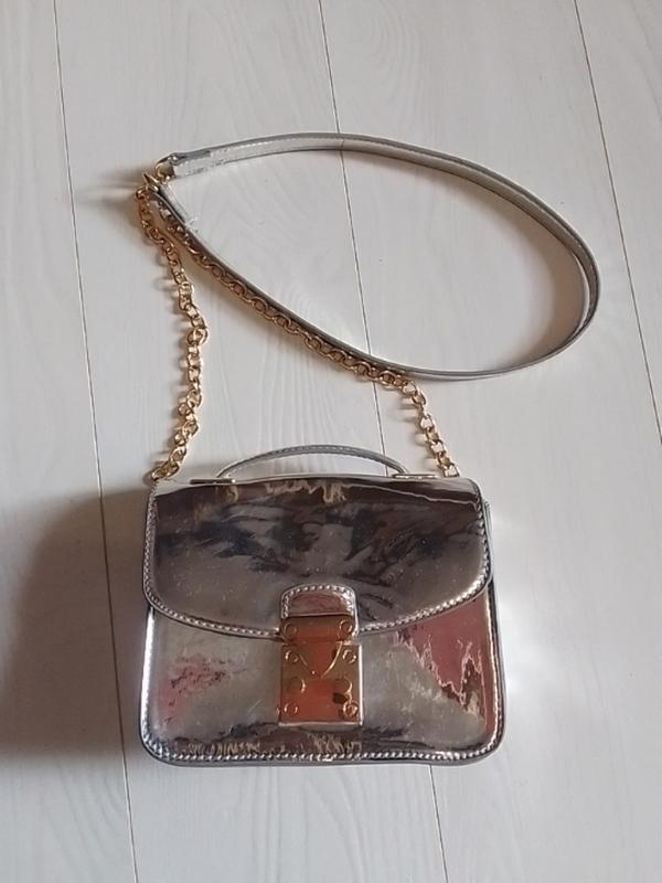 маленькая серебряная зеркальная сумочка 17×14 см.з боку 6.5 см.