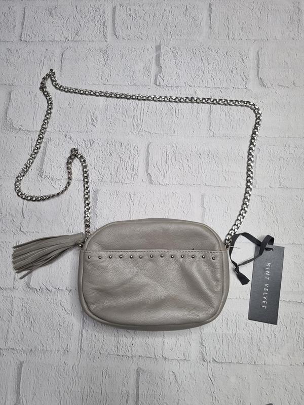 Элегантная кожаная женская сумочка универсального цвета дополнит ваш романтичный образ. Сумочку можно носить как клатч, а можно повесить на плечо с помощью ремешка в виде металлической цепочки. Длина - 18,5 Ширина - 5 Высота - 13