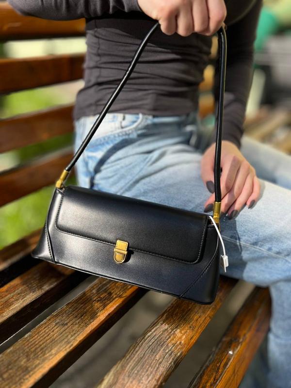 Сумочка чорного кольору зі штучної шкіри, вика якість матеріалу
