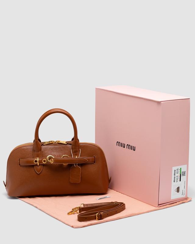 ❤️ Miu Miu Aventure Nappa Leather Top-Handle Bag Brown (Арт: 99539) | Цена: 4900 грн | Размер: 34 х 18 х 11 см | Материал: Кожа Сумка выполнена из текстурной кожи. Внутри одно большое отделение, также есть карман на застежке. Подкладка из плотного текстиля с фирменным дизайном. Закрывается отделение на застежке. Фурнитура металлическая, брендированная. Ремешок для ношения через плечо - на карабинах, кожаный, регулируется по длине. Комплектуется в брендовой коробке на магнитах и пыльнике.