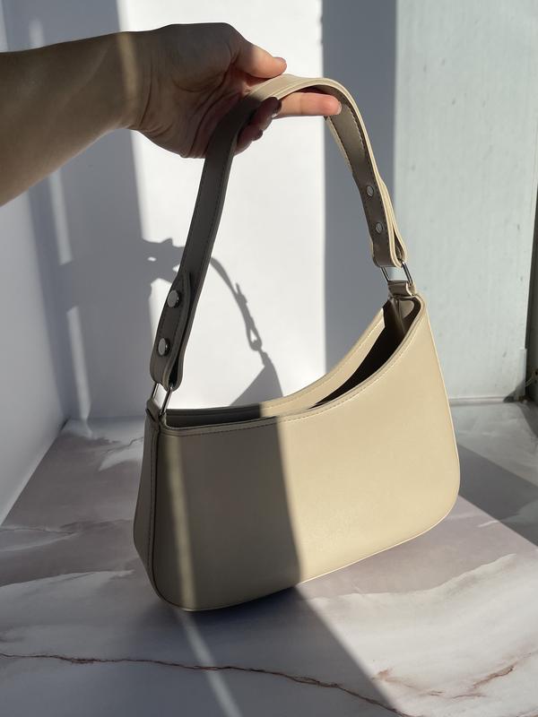 Популярная сумочка на плечо, асимметричной формы. Была в использовании несколько раз, в идеальном состоянии. В комплекте есть также длинный ремешок. Длина 27см Высота 13 см Глубина 7 см Ремешок 45