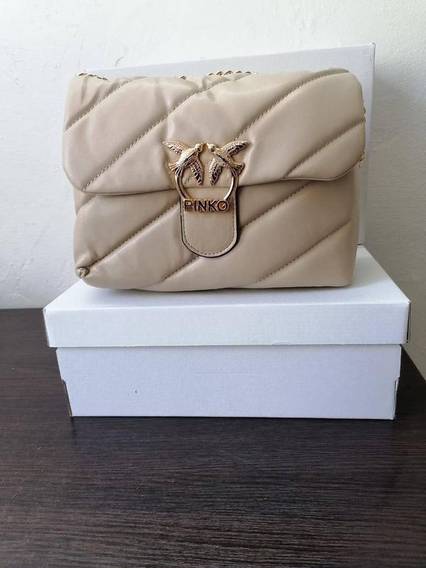Pinko puff beige сумка Состояние: Новый 📎Материал - эко-кожа 📎Размер : 25х20х8 📎Сумка выполнена из мягкой эко кожи. Внутри один отдел, подкладка текстильная, есть небольшой карманчик, емблема с надписью бренда. Ремешок-цепочка, золотого цвета, ручка из эко-кожи, длина 100см, можно носить сложенную вдвое через плечо. 📎Бесплатная упаковка: обычная крафт коробка, цветная бумага. Полное сходство с оригиналом Отправка только по предоплате новой почтой За всеми вопросами писать в личные сообщения Арт:1307