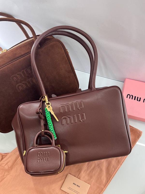 Сумка саквояж кожаная коричневая брендовая люкс миу миу