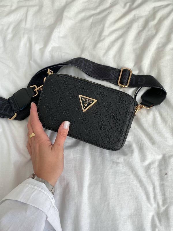Guess Zippy Snapshot (ЛЮКС) - код black/gold - 3102 - Размер: 21 х 12.5 х 7 см - Материал: люксовая эко кожа Описание: Сумка изготовлена из люксовой эко кожи с фирменным тиснением. Внутри два отделения, на молниях. На задней стенке сумки есть небольшой карман. Подкладка внутри сумки из черной эко кожи. Ремешок текстильный с фирменными надписями, регулируется от 63 до 105 см в длину. 📌Комплектуется в брендовой коробке "Guess" и бумаге (по дополнительной плате можно приобрести документы, пыльник и фирменный пакет).