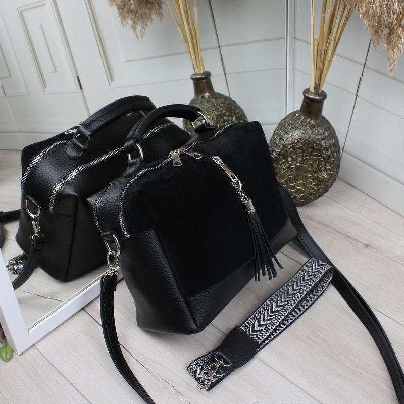 Очень красивая и удобная сумочка с двумя ремешками♥️ Код Д534 ☑️Материал: Натуральная замша/Стающая кожа очень хорошего качества ☑️Размер: 27 см ширина. 18 см высота. 13 см глубина. Фурнитура серебряная ☑️Два отдельных отделения на молнии. Внутри открытый карман и карман на молнии. На лицевой и обратной стороне карманы на молнии. Косточка на переднем кармане съемная. В комплекте два съемных ремня. Длина тканевого ремня 105 см,ширина 4 см. Максимальная длина ремня из искусственной кожи 150 см