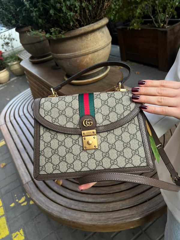 canvas ophidia series (Арт: 05006) Премиум качество⭐️ 📐 Размер: 24 х 17 х 7 см 🧵 Материал: Канва 🔎 Описание: Сумка изготовлена из канвы, имеет брендированный рисунок. Внутри два отделения, также есть 2 кармана, один из которых на застежке с фирменным тиснением на кожаной нашивке. Подкладка у сумки из приятного на ощупь текстиля. Ремешок для ношения через плечо - кожаный, имеет регулируемую длину. Также есть коробка ручка для носки в руке. Закрывается на замок со скрытым механизмом. В комплекте брендовая коробка на магнитах, пыльник.