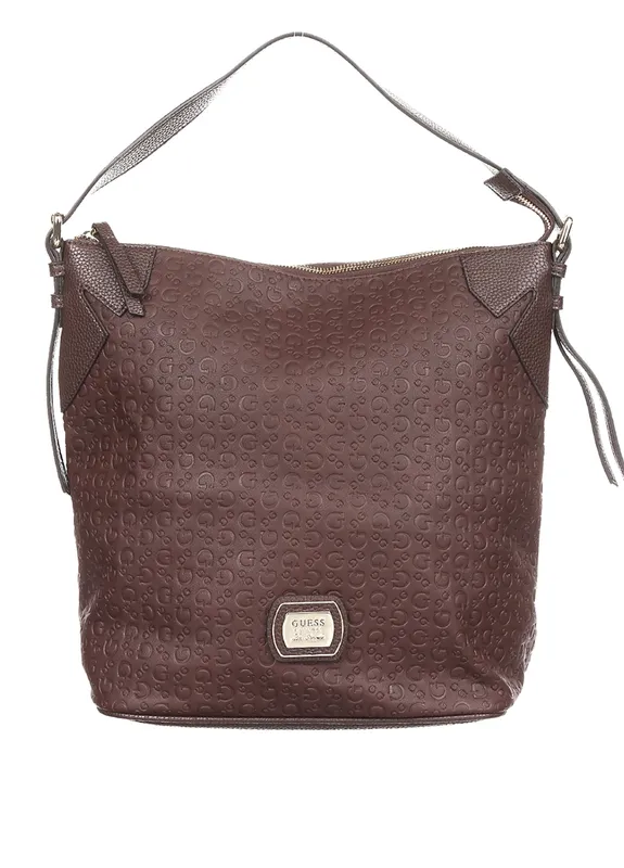 Сумка Guess оригинал, через плечо, красивого шоколадного цвета с тиснением лого на коже