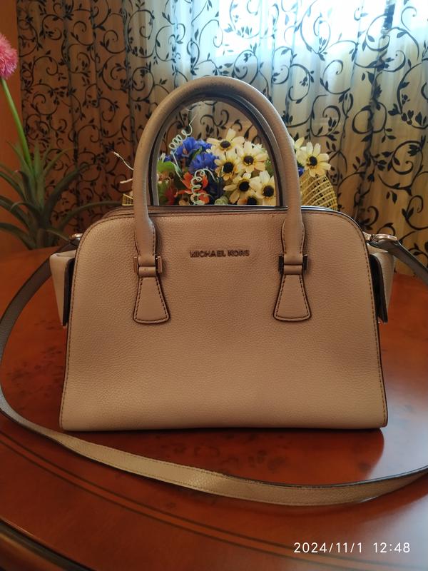 Сумка МК оригинал в красивом состоянии, следы носки на ручках,можно закрасить, можна обкрутить платинкой (дам в подарок),потертая ручка ближе к телу, при носке на длинном ремешке падает и ее не видно.Е незначительные загрязнения на подкладе Кожа, удержит форму, интересующая модель.Ш по низу 30,поверху 25,Высота 22 Ш дна 13 могут в комплекте предложить оригинальный кошелек МК в хорошем состоянии 550 грн.