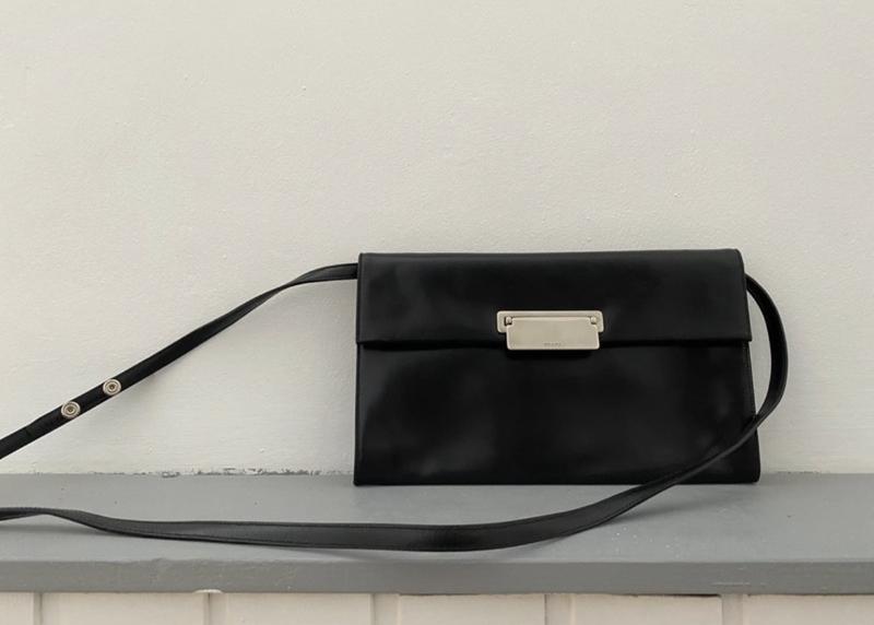 Сумка через плечо Prada из черной кожи с регулируемым ремешком. Есть сертификат и серийный номер. Сумка имеет жаккардовую подкладку внутри с одним карманом, отличное состояние 28×17 см