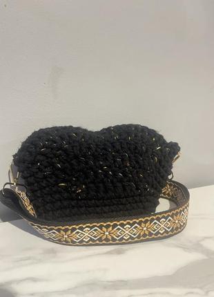 Вязаный крючком, спереди вставки из золотой нити Нитка макраме На кнопке Ручка сменная