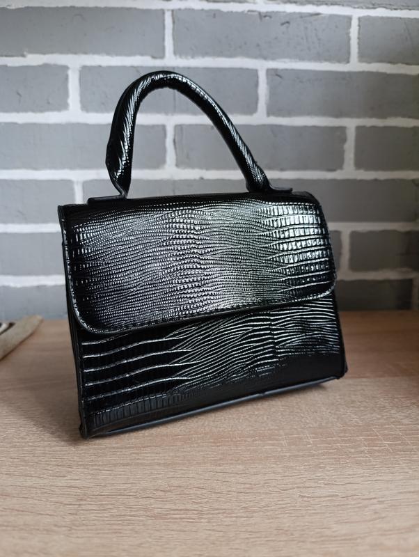 Primark маленька лакована сумочка. Высота 14см Ширина 19см. По дну 6.5см. Длина ручки 9см. Черный цвет. Отличное состояние.