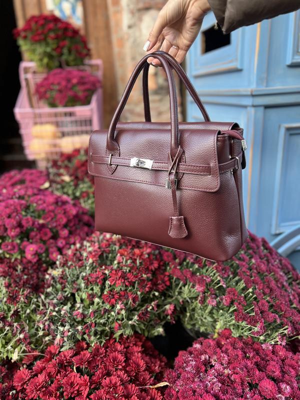 Шкіряна сумка в бордовому кольорі 😍 Розміри: 35 *22 *12 Матеріал: шкіра флотар Гарно тримає форму, каркасна Срібна фурнітура В комплекті довгий ремінець Дуже вмістка