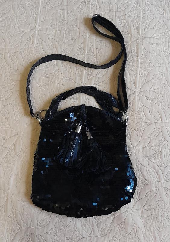 Элегантная сумка Next в пайетках черного цвета, хорошего качества, в отличном состоянии, застегивается на кнопку, классно смотрится и дополняет образ