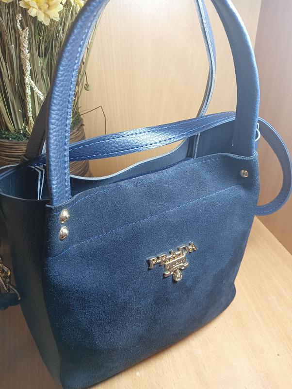 Сумка из искусственного замша спереди и эко-кожи по бокам и сзади. цвет темно синий. размер длина 27см высота21см ширина 11см. Включает удлиненный ремешок и ножки на дне. на последнем фото виден затерянный один золотой пуговица. ремешок не снимается. станнна 4+