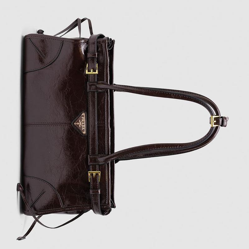 ❤️ Prada Medium Leather Handbag Dark Brown (Арт: 99628) ⏺ Розмір: 33 х 17 х 10 см ⏺ Матеріал: Шкіра Сумка виконана з текстурої та м’якої лакованої шкіри. Всередині одне відділення, також є кишеня на застібці. Підкладка з щільного брендованого текстилю. Зачиняється відділення на застібці. Фурнітура металева, має фірмові тиснення. Ланцюжок для носіння через плече - на карабінах, з регулюємою довжиною. Комплектується в брендовій коробці та пильовику, є картка.