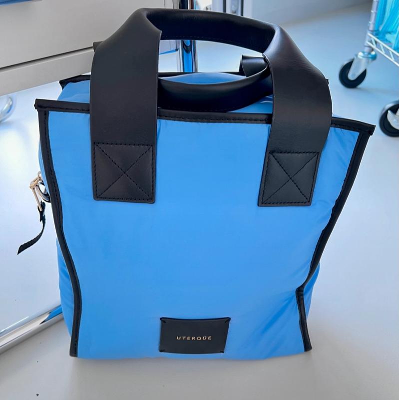 сумка Утеркью. Uterque синяя сумка-шоппер Квадратная модель с одним основным отделением и боковым карманом на молнии. Без ремня, но подойдет любой размер. Высота х Ширина х Длина: 28 х 14 х 28 см. куплена по цене 99 евро.